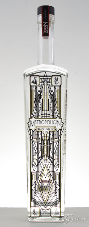Metropologin is a “Minnesota Organic Gin,” which as the side of the bottle describes an evocative portrait, that it is designed to be enjoyed with the sun shining on your face at a lake [which is notable, given that Minnesota has 15,291 lakes*, 7 of which are named Elbow Lake and 14 Named Eagle Lake, but I digress]. Loon Liquors was the first distillery in Southern Minnesota in nearly a century.  The base spirit is distilled from  locally sourced Wheat and Barley, and the label reveals several hints that we might have a less than traditional botanical blend, indicating Black Currant, Rosemary and Cardamom. Though I mostly keep it to the product, let me just say: this is a beautifully designed bottle, with an Art Deco motif that suggests a prohibition era link that also, in the more recent cultural consciousness, strongly suggests the 2013 The Great Gatsby movie adaptation’s cover art.Â