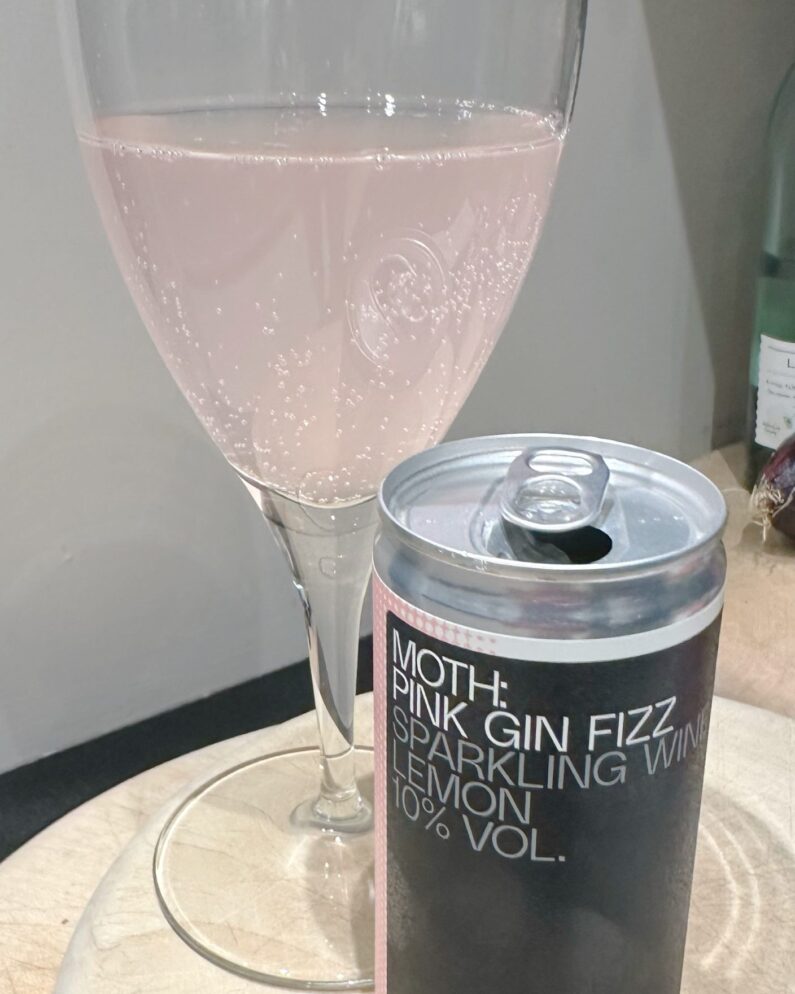 Moth’s Pink Gin Fizz is made with Tarquin’s Cornish Gin, sparkling wine and lemon. It’s canned at 10% ABV.