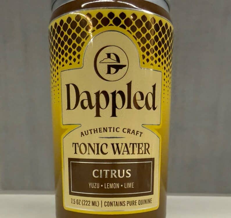 Dappled Citrus Tonic Water features yuzu, lemon and lime. It’s sweetened with cane sugar and uses pure quinine for its bittering. Each can is 80 calories (220 mL) and has 19g of sugar.